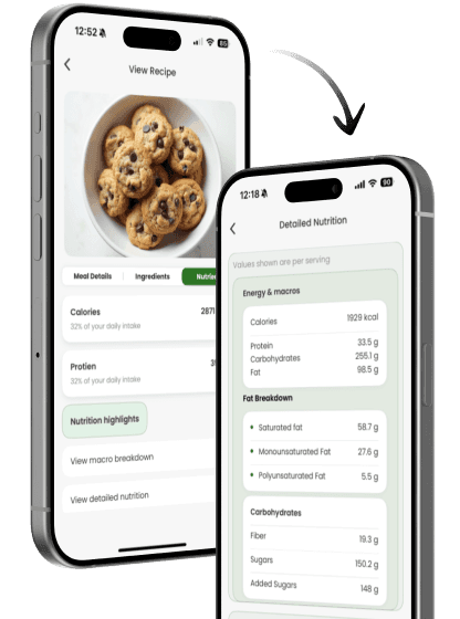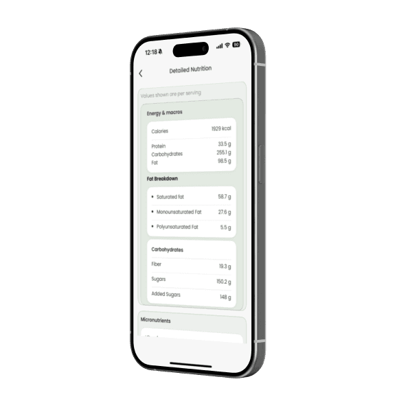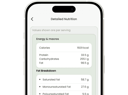 View calories, macros, and ingredients clearly