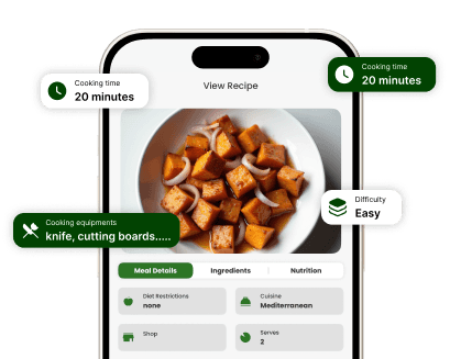 Add what’s in your kitchen, we turn it into meals you can cook right now.